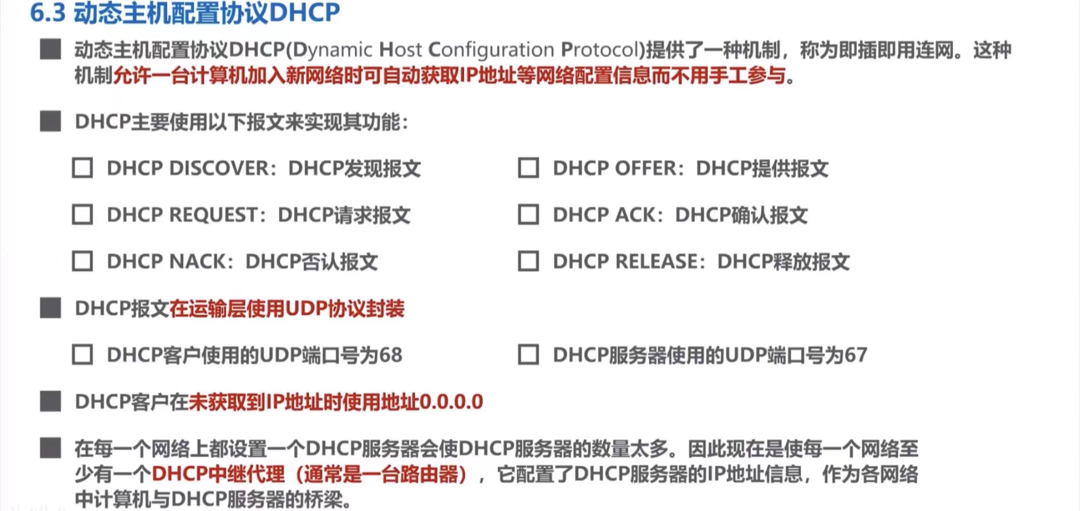 DHCP(Dynamic Host Configuration Protocol,动态主机配置协议) 是 TCP/IP 应用层协议,基于 UDP 67(服务器)/68(客户端) 端口,用来自动给网络设备分配 IP 及相关参数,替代手动配 IP 。