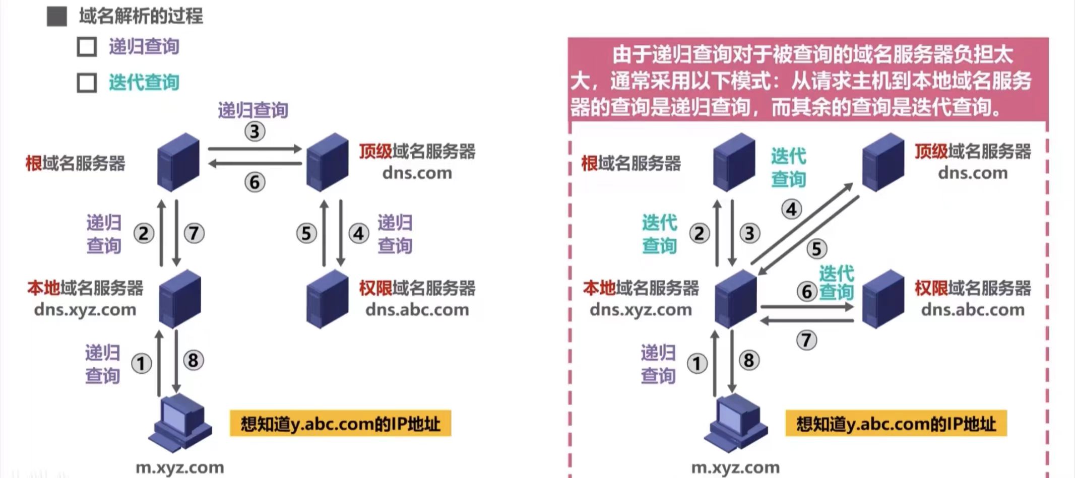 本地/递归DNS服务器:运营商DNS、公共DNS(223.5.5.5、114.114.114.114),替用户迭代查询。