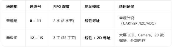 - 128 个外设请求 → 任意映射到任意 GPDMA 通道