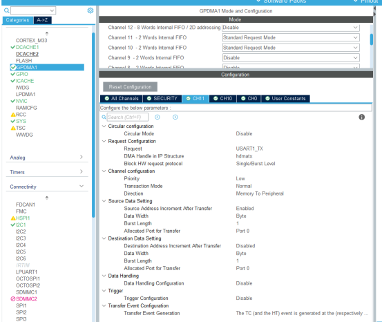 STM32U5 的 GPDMA (General-Purpose DMA) 是新一代高性能、全功能通用 DMA 控制器,专为复杂、高带宽、低功耗场景设计。它彻底重构了传统 DMA 架构,集成 DMAMUX + 支持链表 + 2D 寻址 + 双 AHB 端口 + 自主传输 ,是 STM32U5 性能与低功耗的核心支柱