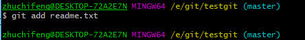 第一步:使用命令 git add readme.txt添加到暂存区里面去。如下: