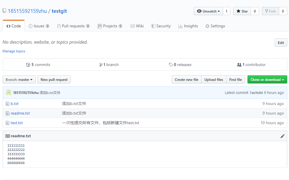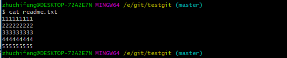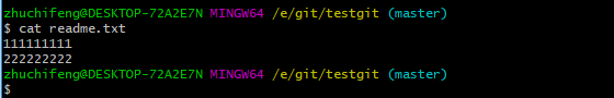 我在版本库testgit目录下新建一个记事本文件 readme.txt 内容如下:11111111