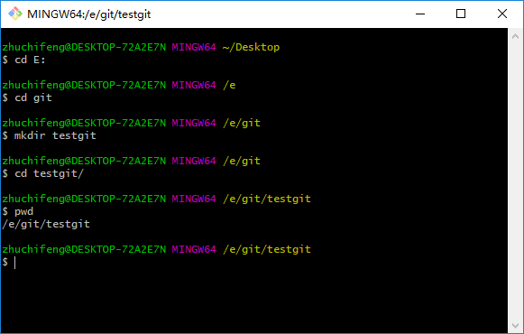 现在,我们根据GitHub的提示,在本地的testgit仓库下(E:\git\testgit)运行命令: