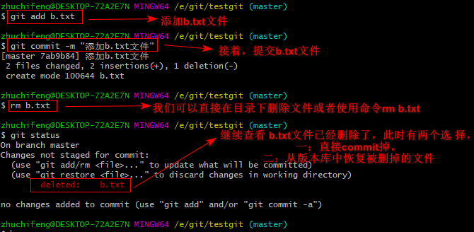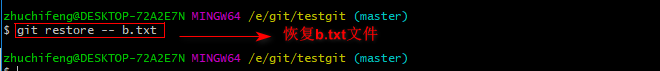 可以使用如下命令 git restore-- b.txt,如下所示:
