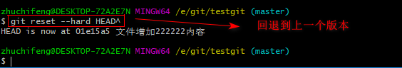 如果想回退到上一个版本的命令如下操作: