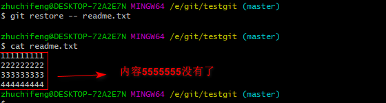 git restore -- readme.txt,如下所示: