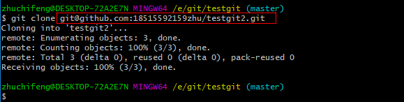 接着在我本地目录下 生成testgit2目录了,如下所示: