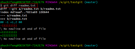 git diff readme.txt 如下: