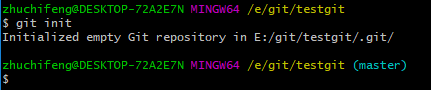 所以创建一个版本库也非常简单,如下我是E盘 --> git目录下新建一个testgit版本库。