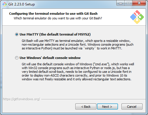 选择使用什么样的命令行工具,一般情况下我们默认使用Git Bash即可: