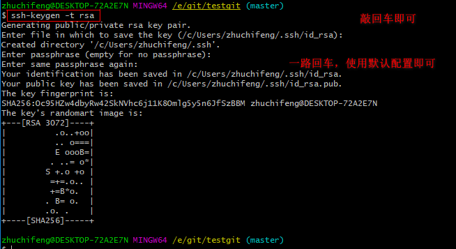 git bash 执行命令,生命公钥和私钥,命令: ssh-keygen -t rsa