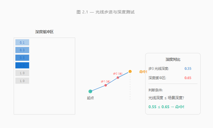 在每个步进点,将光线深度与深度缓冲区中的值进行比较