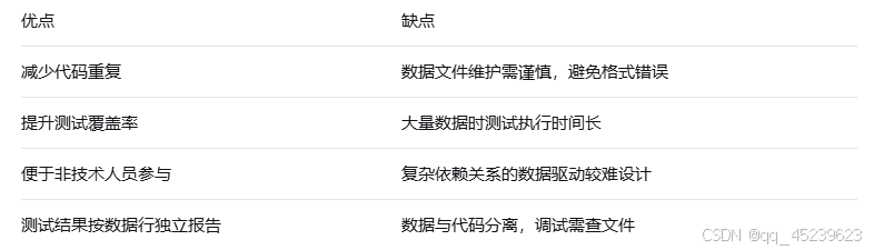 pytest的@pytest.mark.parametrize装饰器配合文件读取同样高效。