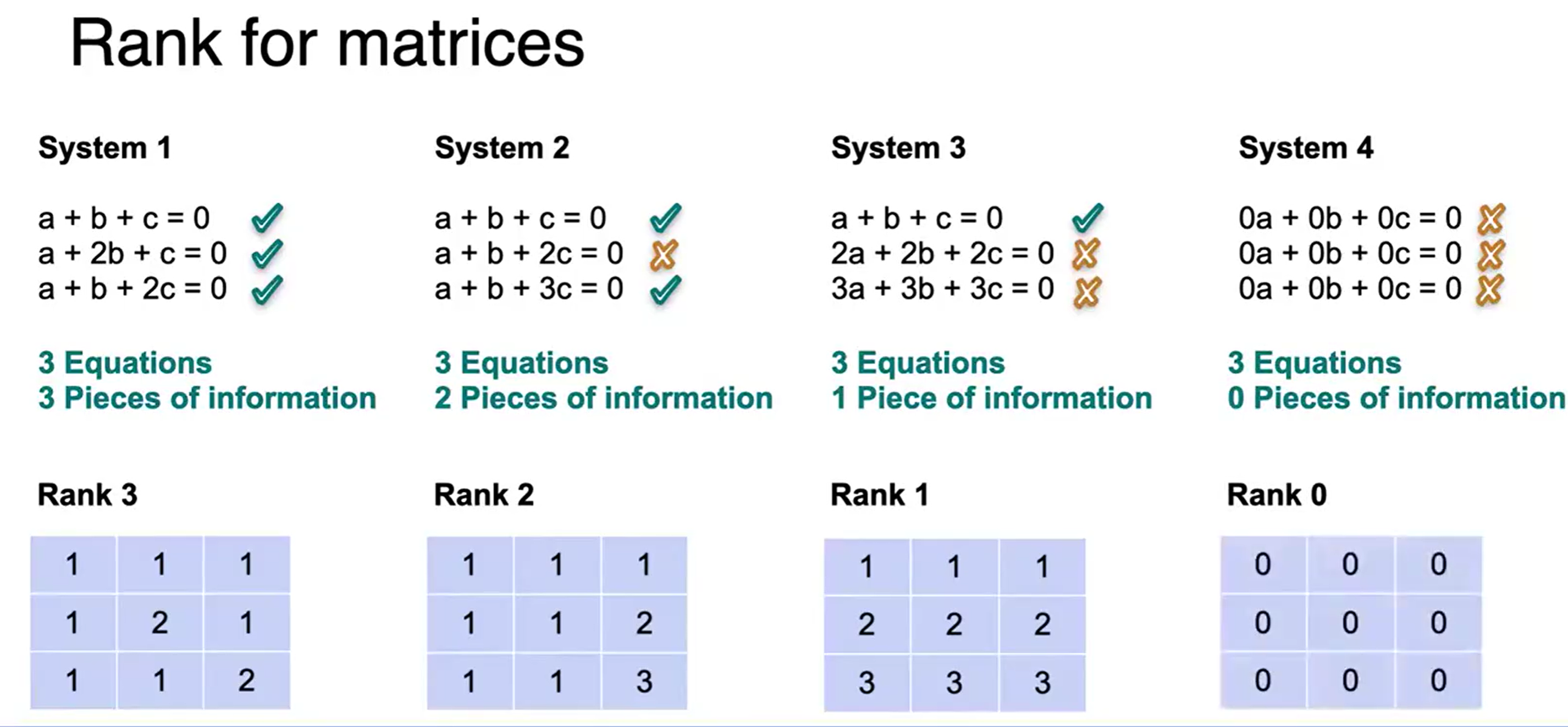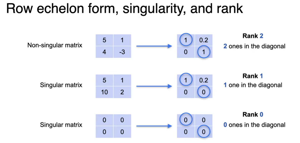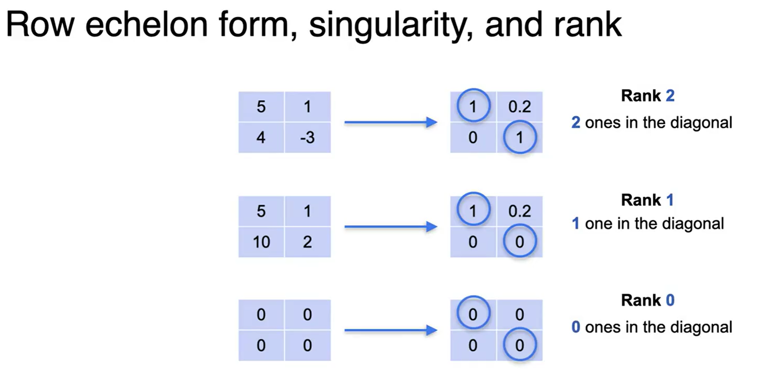 先把矩阵化为row echelon form行阶梯矩阵,然后看对角线上有几个1,则秩就是多少。