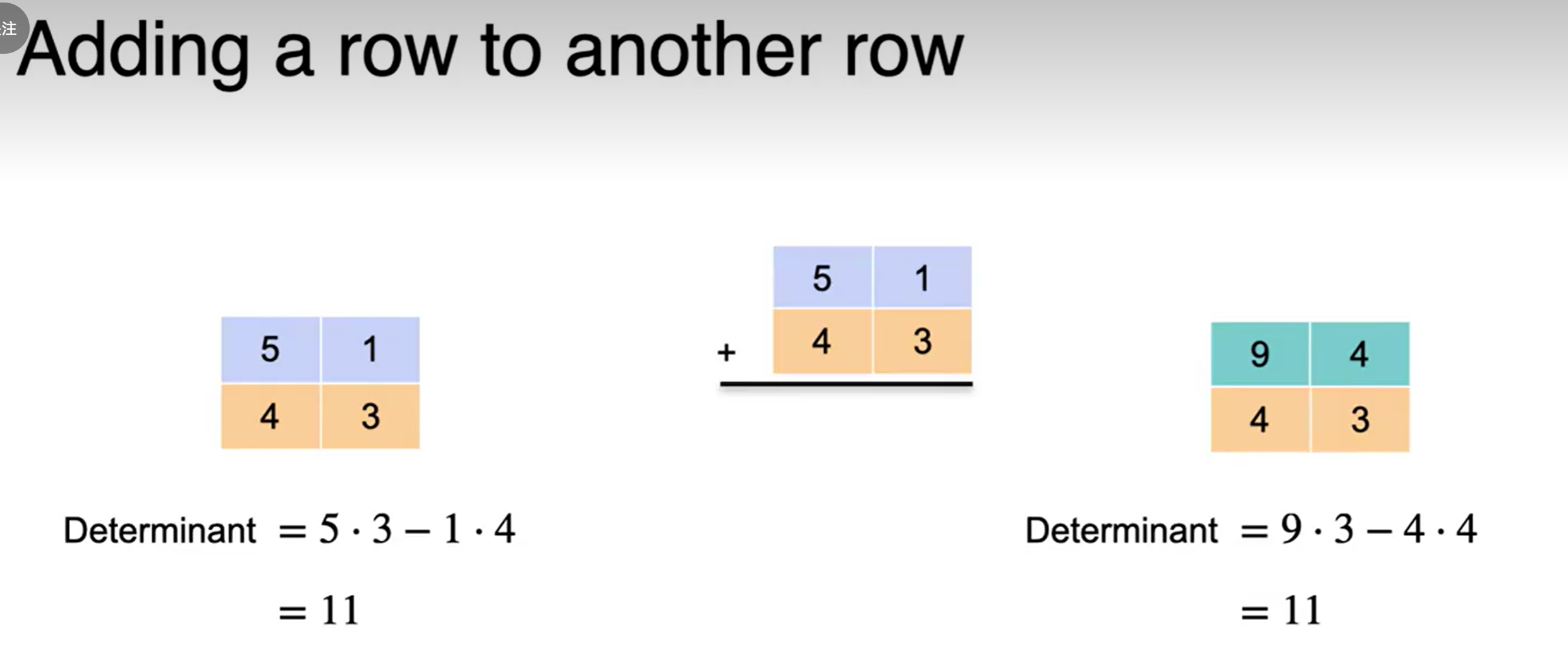 两行相加变成新的第一行,奇异性不变,行列式不变