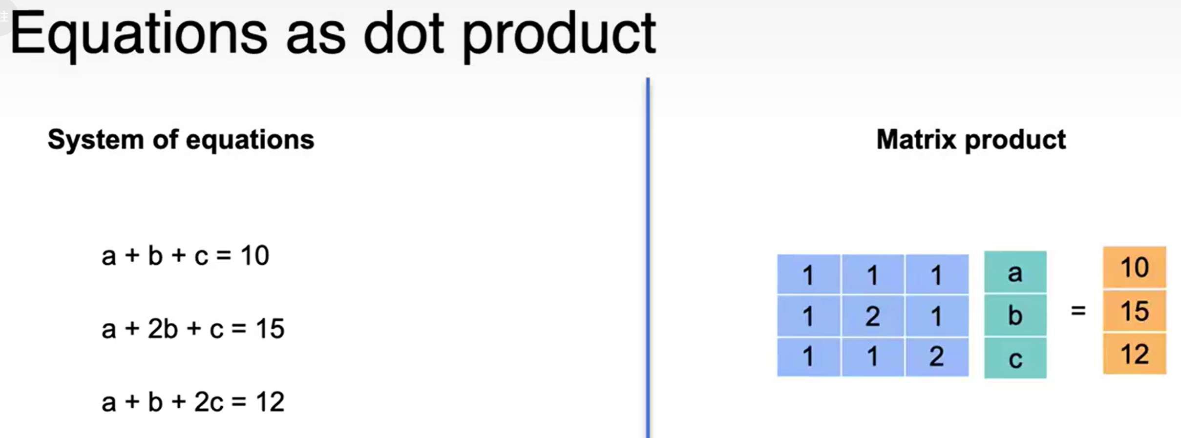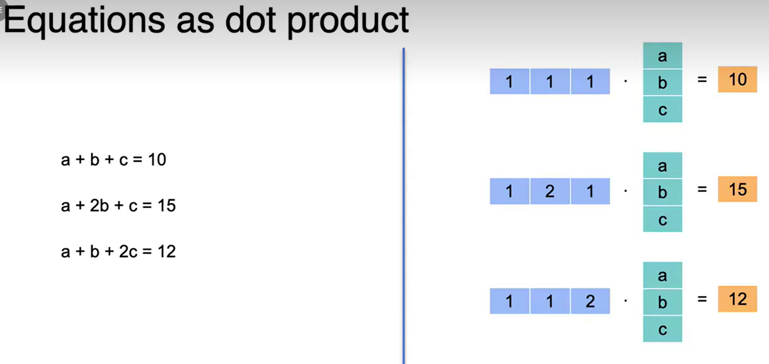 这个看起来是把线性方程组的系数作为矩阵,线性方程组的元作为了向量,线性方程组的值是这个矩阵和向量的点积。