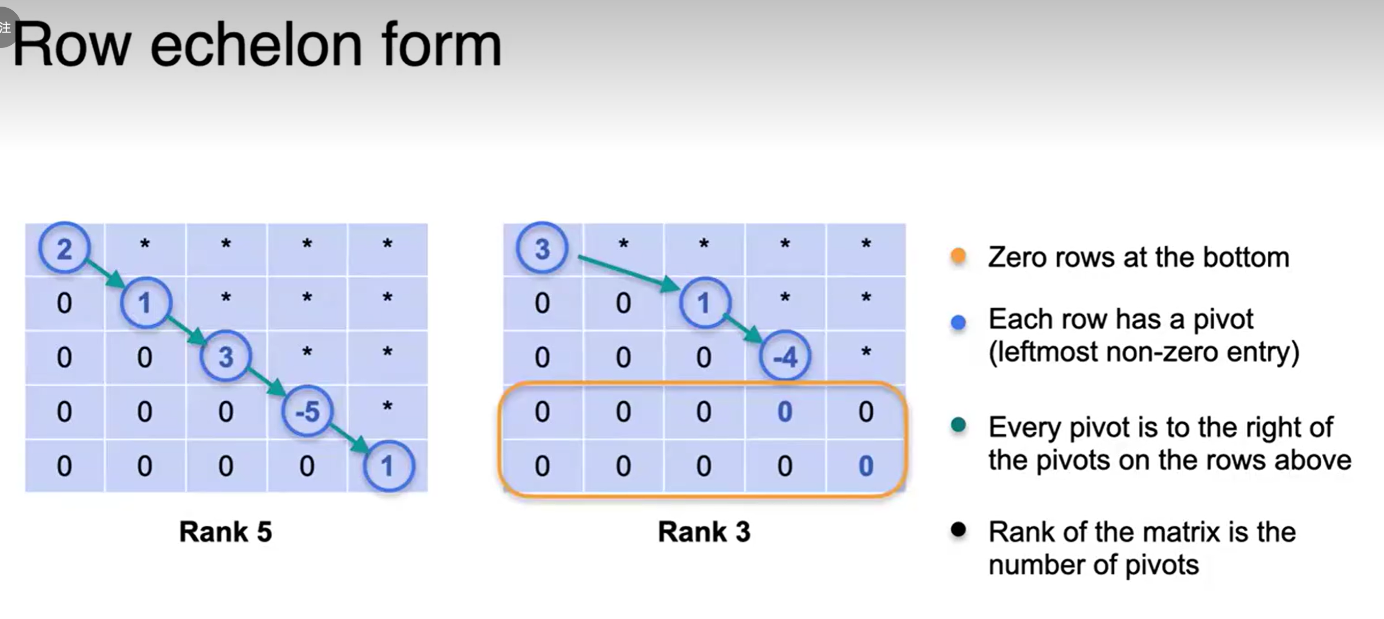 对角线以下为0,主元的右边为任意数,0的右边为0