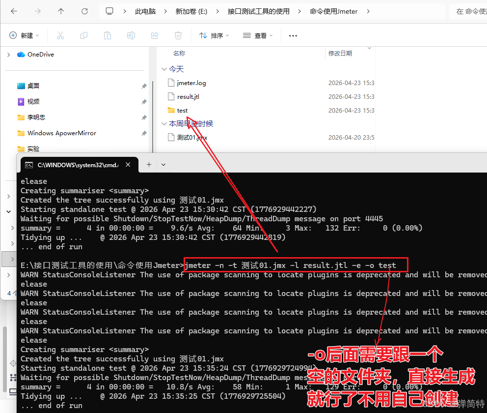 -l表示用来生成 jtl 报告) - [`-e` 和 `-o` 必须一起使用,不能单独使用](#