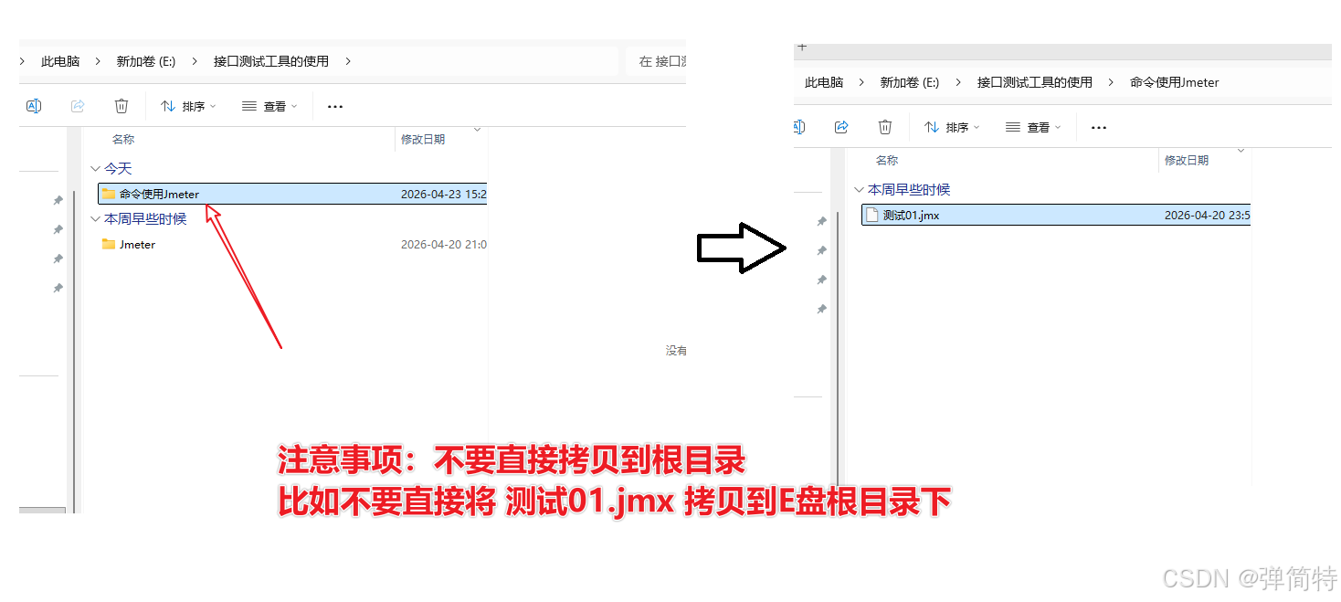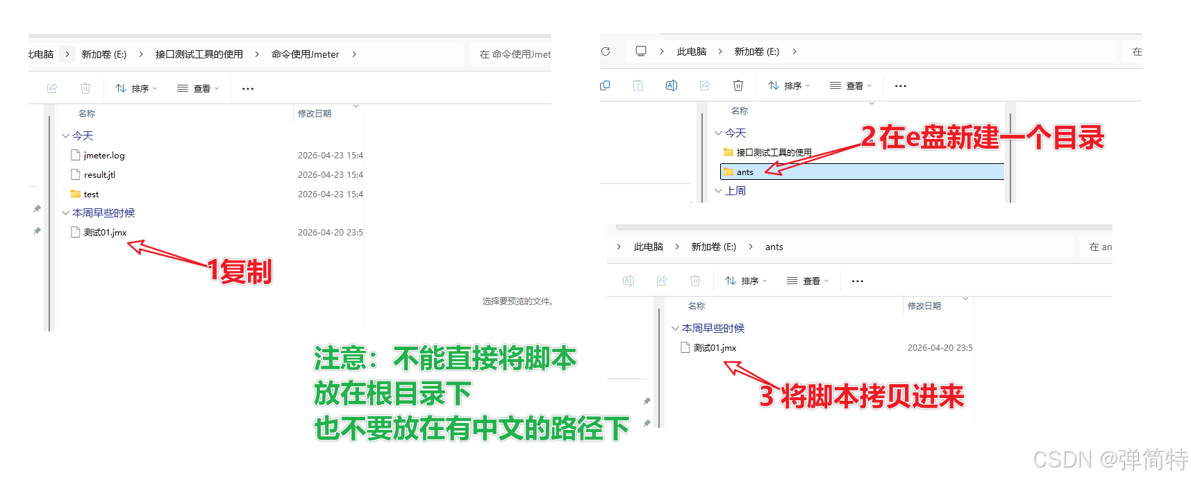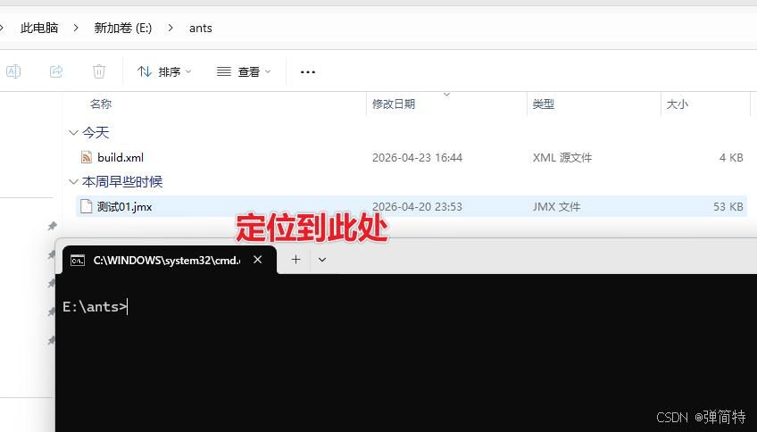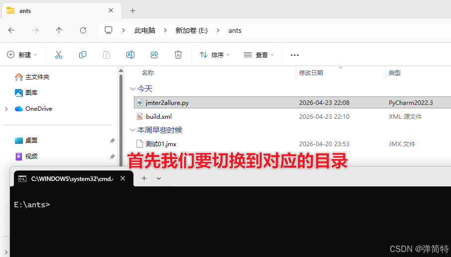 4、此时我们打开我们的dos命令窗口,然后切换到我们刚才的E:\接口测试工具的使用\命令使用Jmeter目录里面去。
