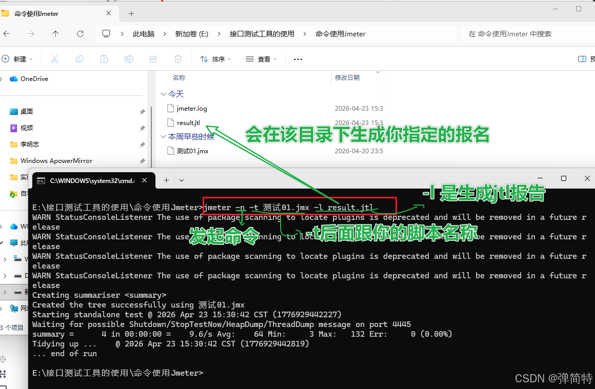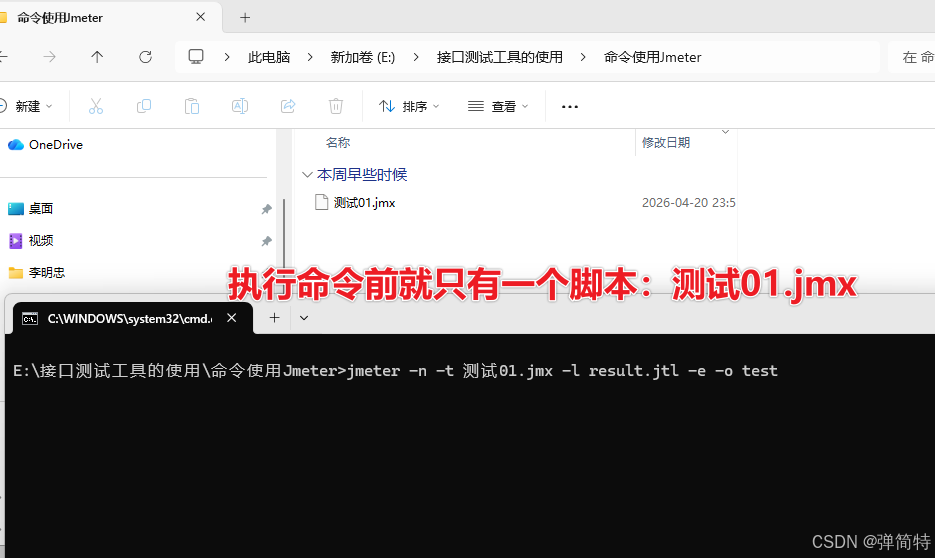 jmeter -n -t 测试01.jmx -l result.jtl -e -o test