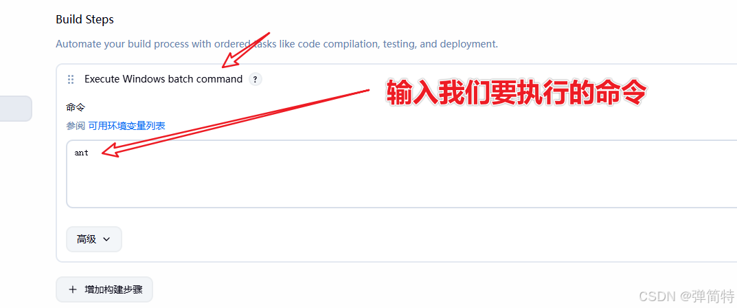 然后输入我们要执行的命令,我们要执行的命令很简单:ant👇