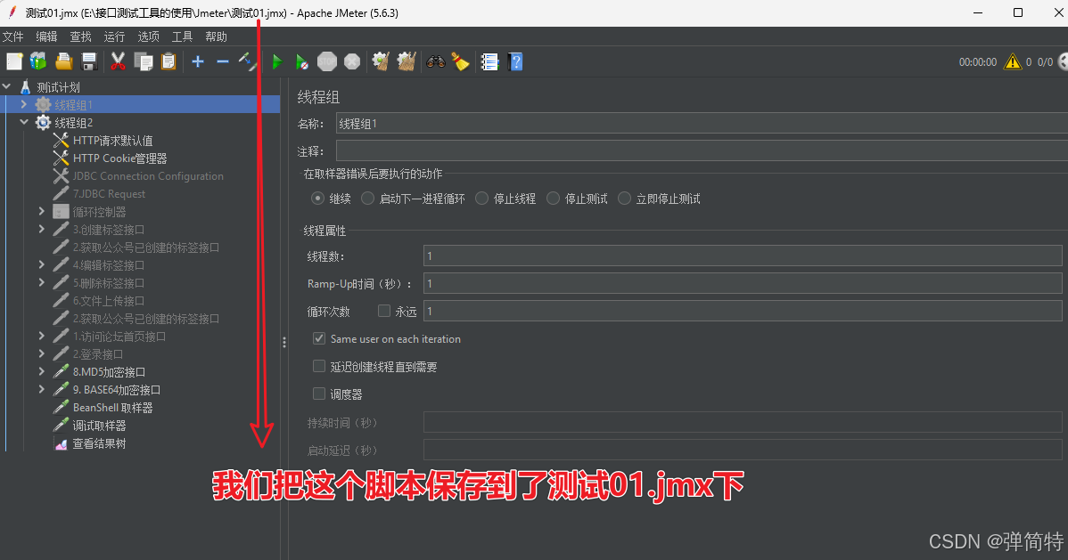 2、那么现在我先将Jmeter这个软件给关闭,然后呢,我们打开测试01.jmx这个脚本