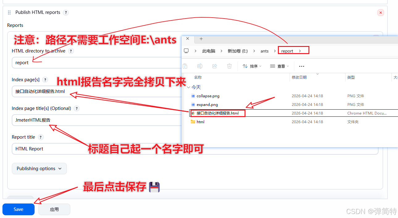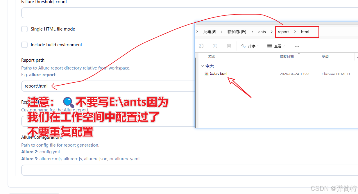 - 6)往下翻,找到高级展开,配置html报告的地址