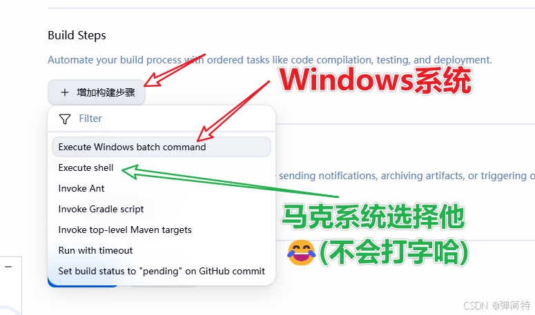 - [3.6 点击【增加构建步骤】:选择执行windows的批处理命令并输入执行的命令](#3.6 点击【增加构建步骤】:选择执行windows的批处理命令并输入执行的命令)
