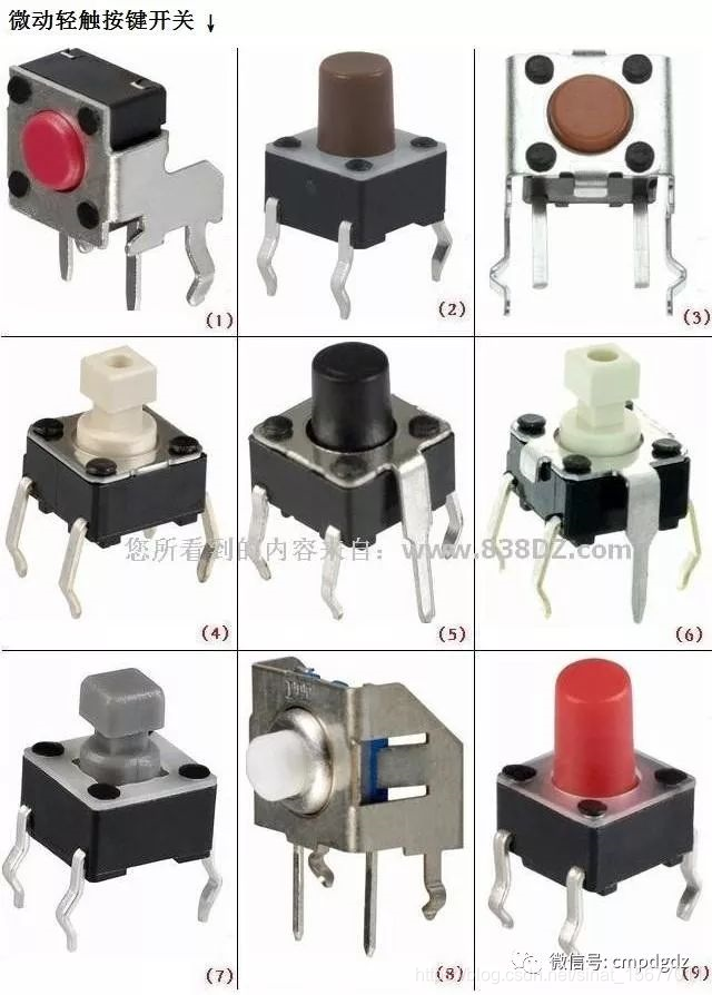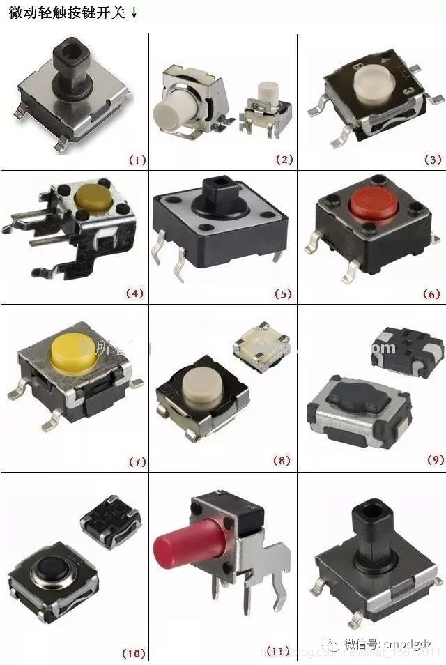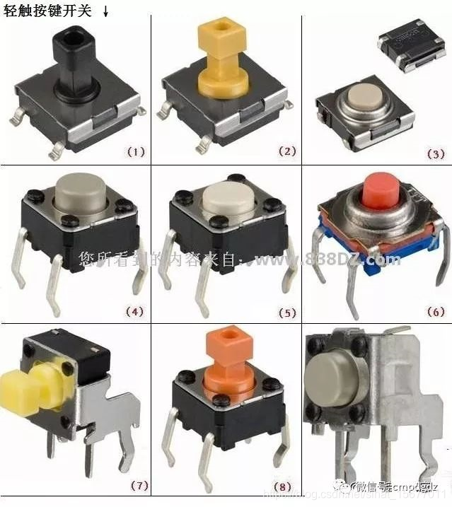 - 小型方形按键:4×4、6×6mm(电路板最通用)