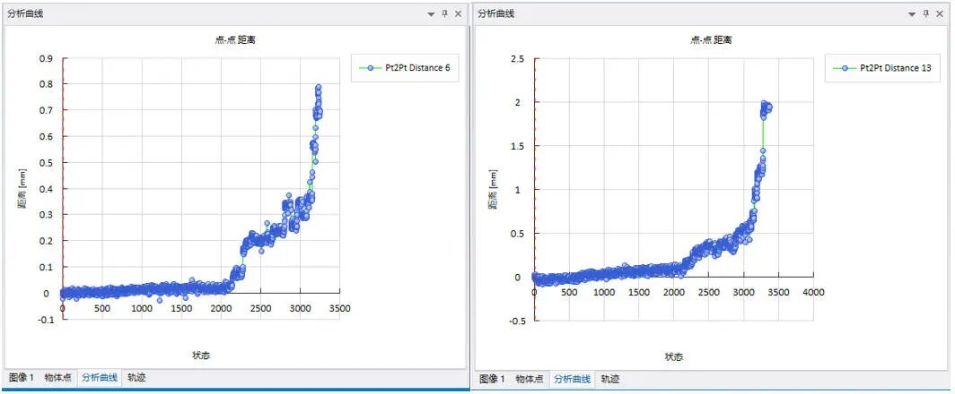 在DIC软件中,取横梁左右两侧裂纹位置的关键点,将该点数据导出,可绘制出该点点距离的绝对值曲线图。