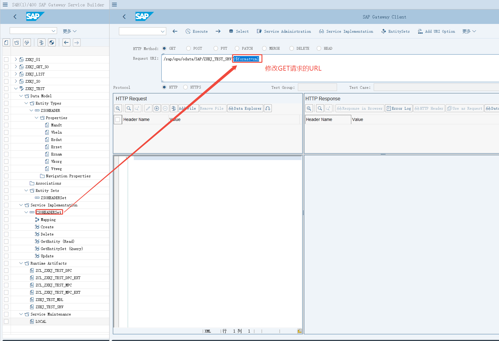 💡 一个真实请求长这样:/sap/opu/odata/SAP/ZXKJ_TEST_SRV/ZSOHEADERSet?filter=Vkorg eq '1710' and Erdat ge datetime'2018-01-01T00:00:00'\& orderby=Erdat desc, Erzet desc& top=50\& skip=0 ;含义:查询销售组织 1710 且 2018 年之后的订单,按创建日期时间倒序,取前 50 条。