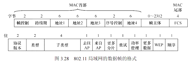 802.11 帧比以太网帧更复杂,可能包含多个地址字段,因为无线帧在站点、接入点和分布式系统之间转发时,需要同时标识发送端、接收端、源地址和目的地址。