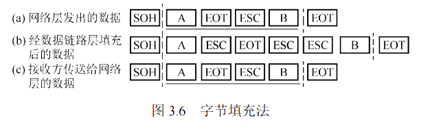 为了解决这个问题,发送方在数据中出现 FLAG 或转义字符 ESC 时,在其前面插入一个 ESC。接收方收到后,如果看到 ESC,就知道后面的字符是普通数据,而不是控制字符。这种方法称为字节填充或字符填充。