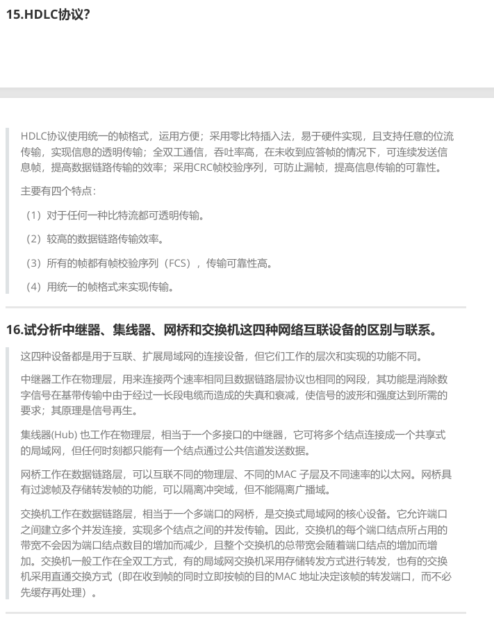 第五,集线器和交换机不能混淆。集线器工作在物理层,转发比特,所有端口共享冲突域;交换机工作在数据链路层,转发帧,能够隔离冲突域。