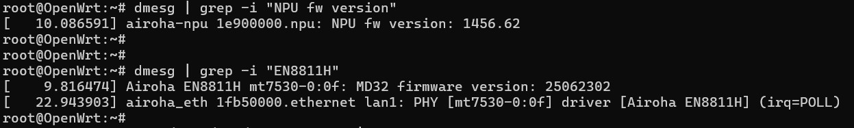 - 固件已集成最新驱动:en7581-npu-firmware (20260410-r1) 与 en8811h-firmware (20260410-r1)。