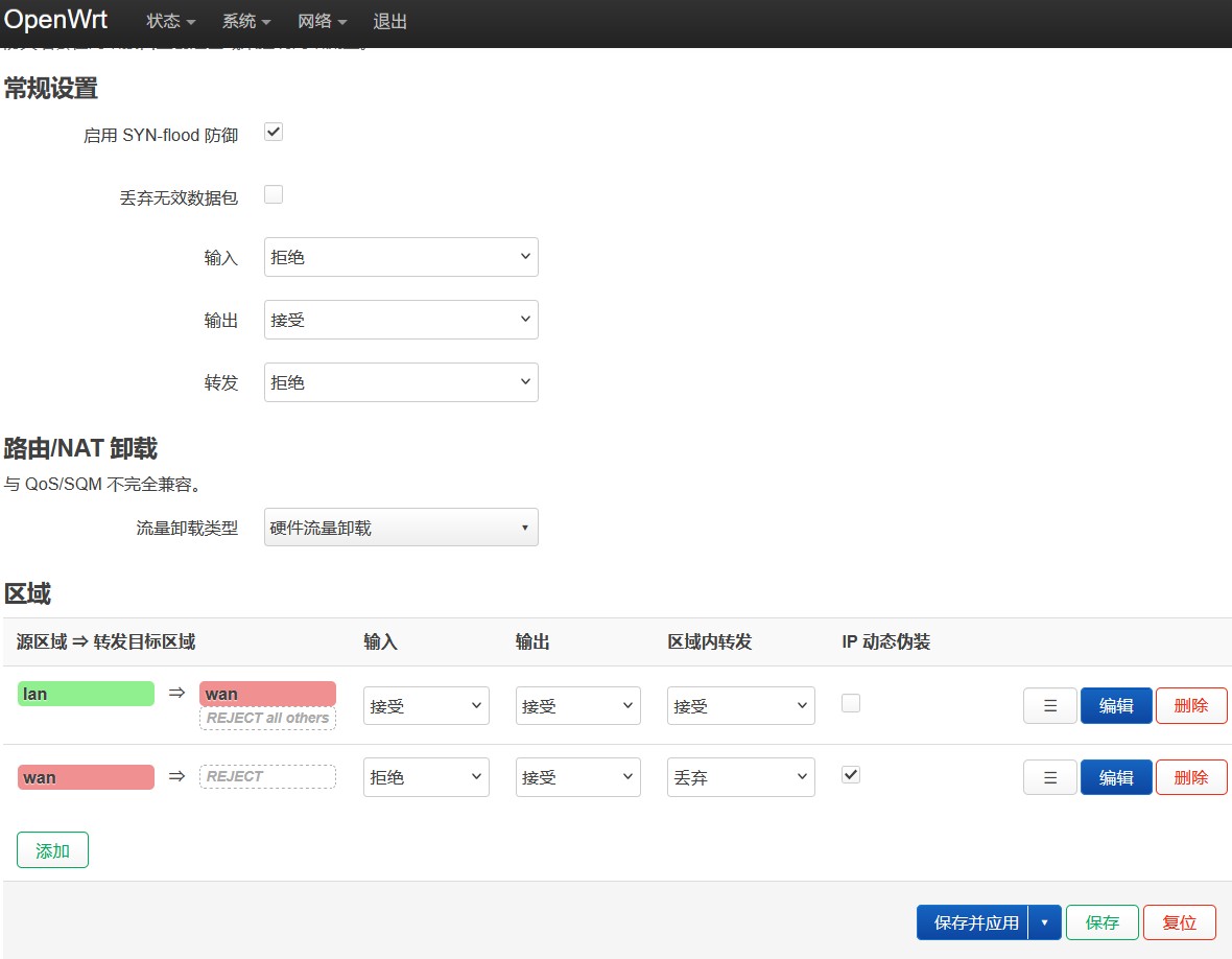 **注意:**为保持系统初始纯净,默认未开启硬件 NAT 转发。