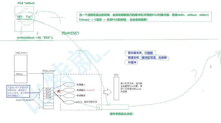 当一个进程在退出的时候,会自动刷新自己的缓冲区(所有的file对象内部,包括stdin,stdout,stderr)