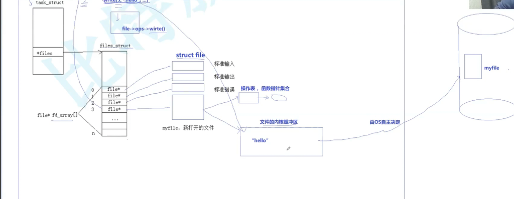 write则会将文件的内核缓冲区中的内容刷新入myfile
