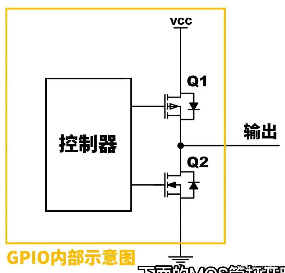 推挽输出 :引脚内部由两个互补的MOS管驱动,一个负责高电平,一个负责低电平。可输出高低电平,驱动能力强。最常见的模式。