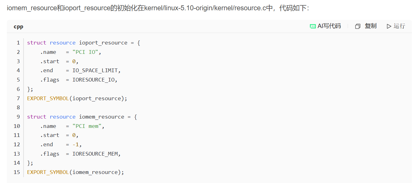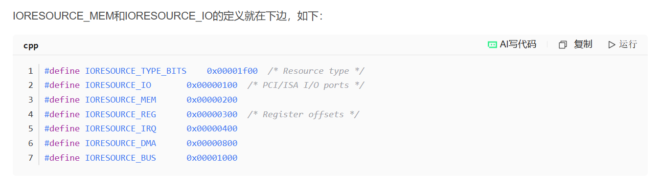 struct resource的定义上一回也给出了,在kernel/linux-5.10-origin/include/linux/ioport.h中,如下: