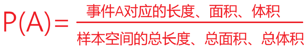 几何概型是古典概型的推广,它的核心是利用数形结合的思想,将数字上的概率问题转换成几何图形的面积、长度、体积。用这些量去求它占总量的比例即可。