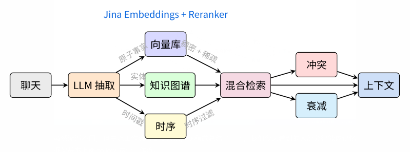 要么用一些 时序数据库(时序非常重要,因为就像我刚才说的,你需要选择性遗忘)3、基于时序数据库、知识图谱和向量库做混合检索