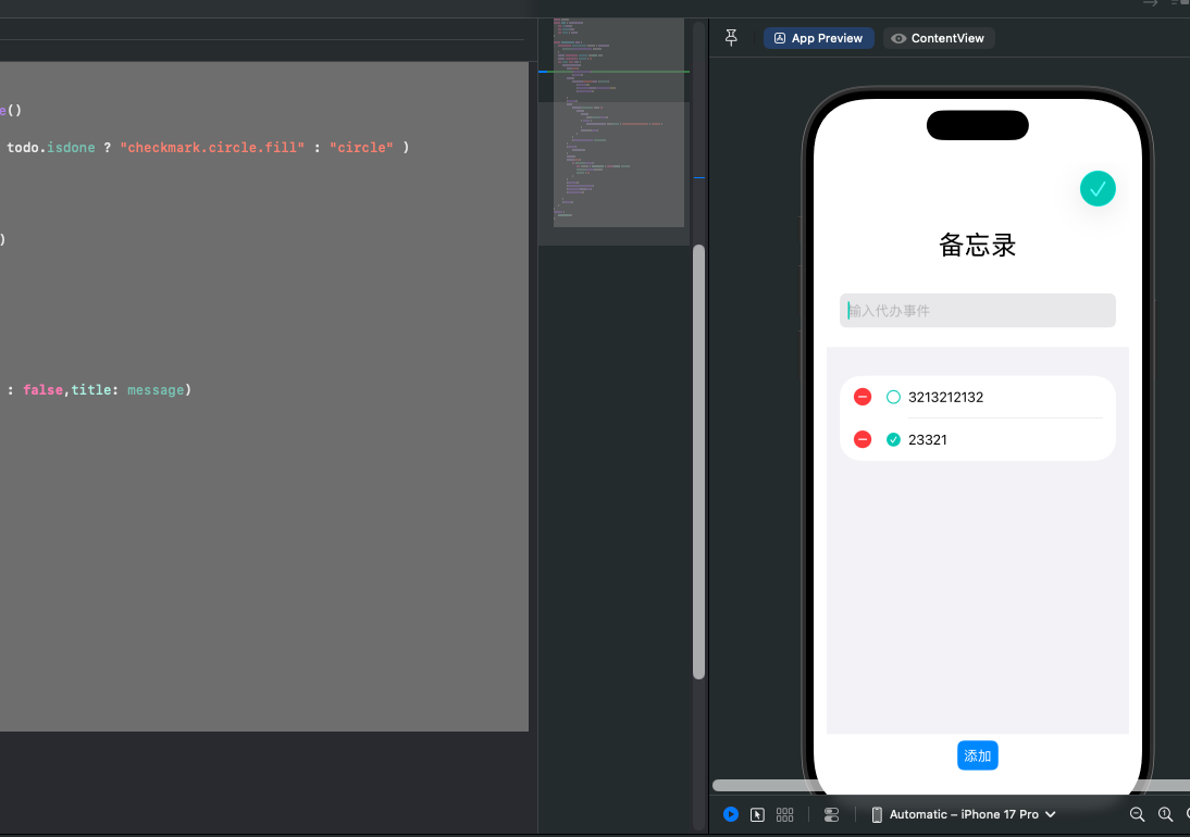 ✅ 现在你可以打字、点添加,数据已经能进列表了,只是还没显示出来。