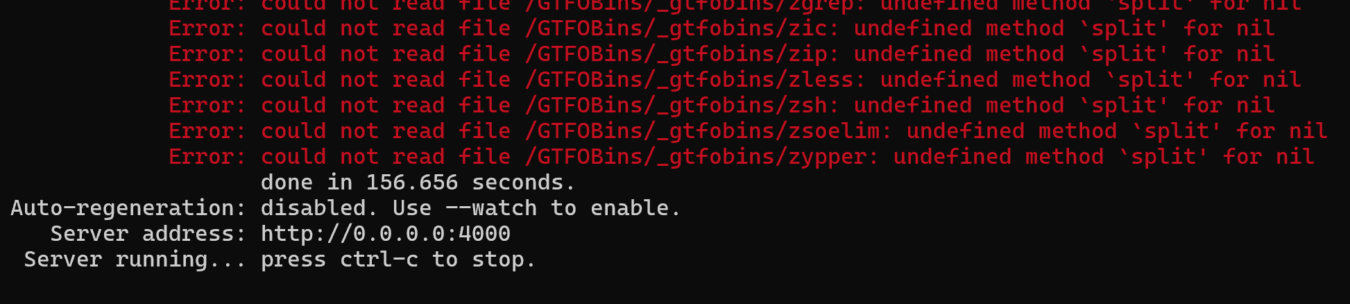 Error: could not read file /GTFOBins/_gtfobins/zsh: undefined method `split' for nil