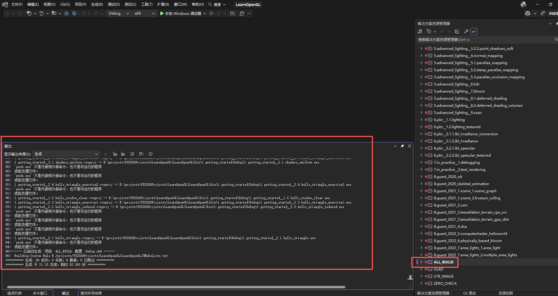 使用VS2026和CMake编译LearnOpenGL项目源代码