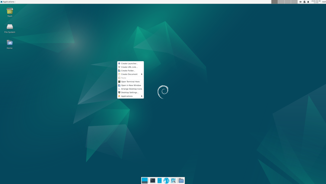 8、修改其他用户密码,登录界面,在空白处右击,出现下图后选择 Open Temminal Here