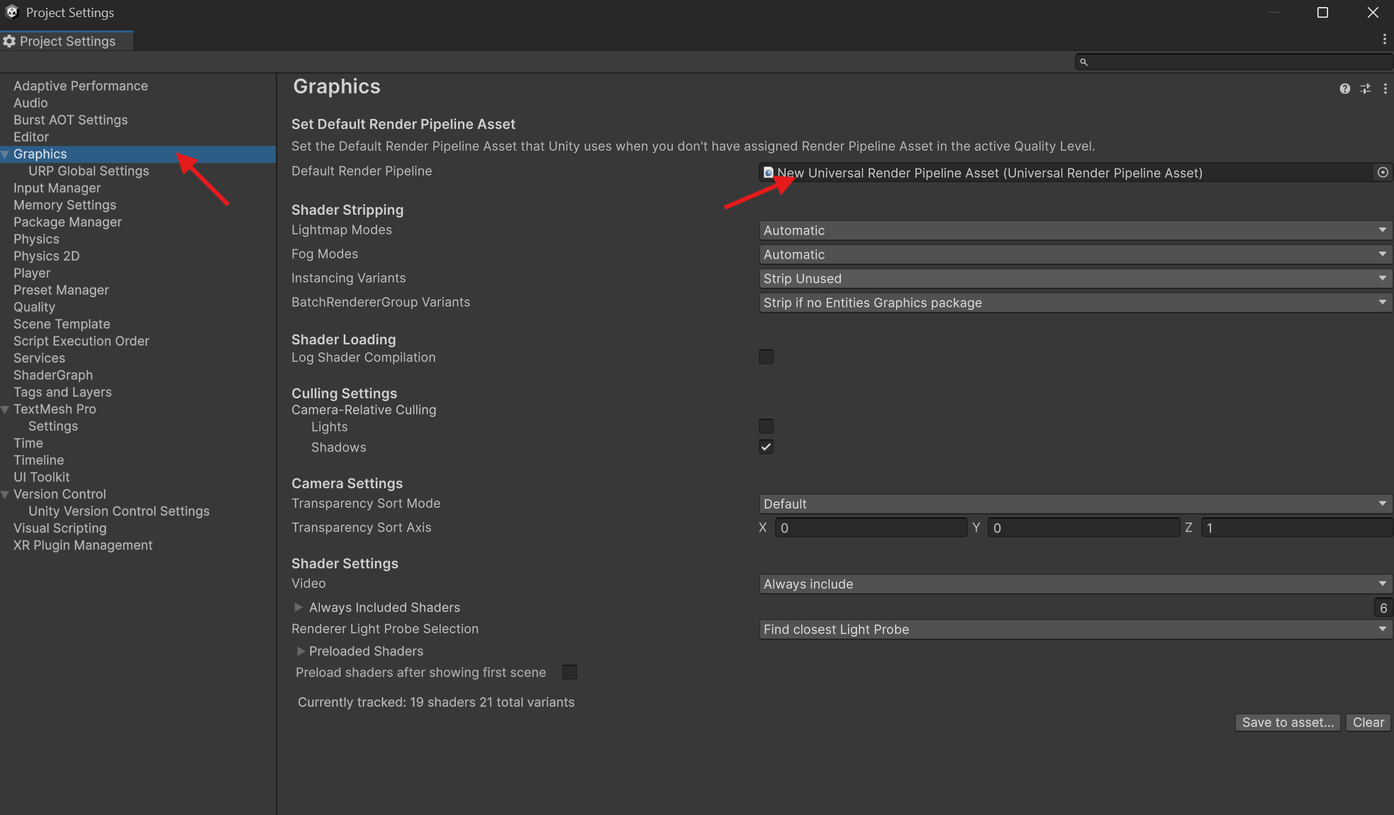 Edit → Project Settings → Graphics- 找到