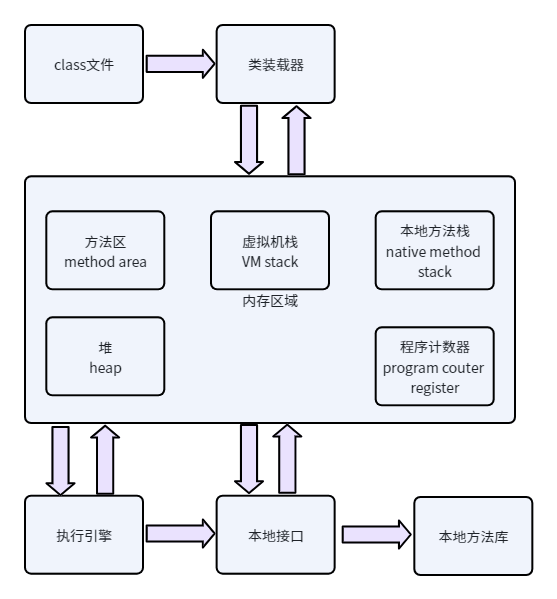 (2)执行引擎:负责执行class文件中包含的字节码指令