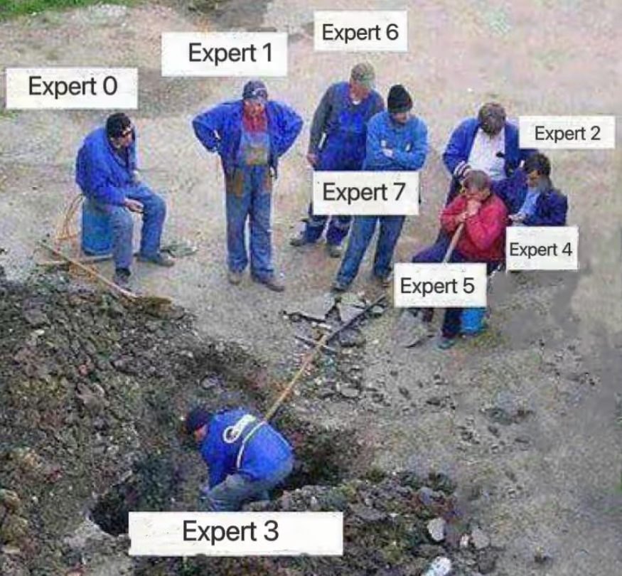 这只是个比方,实际上训出来的MoE有没有这样直观的分工效果,属于可解释性范畴。