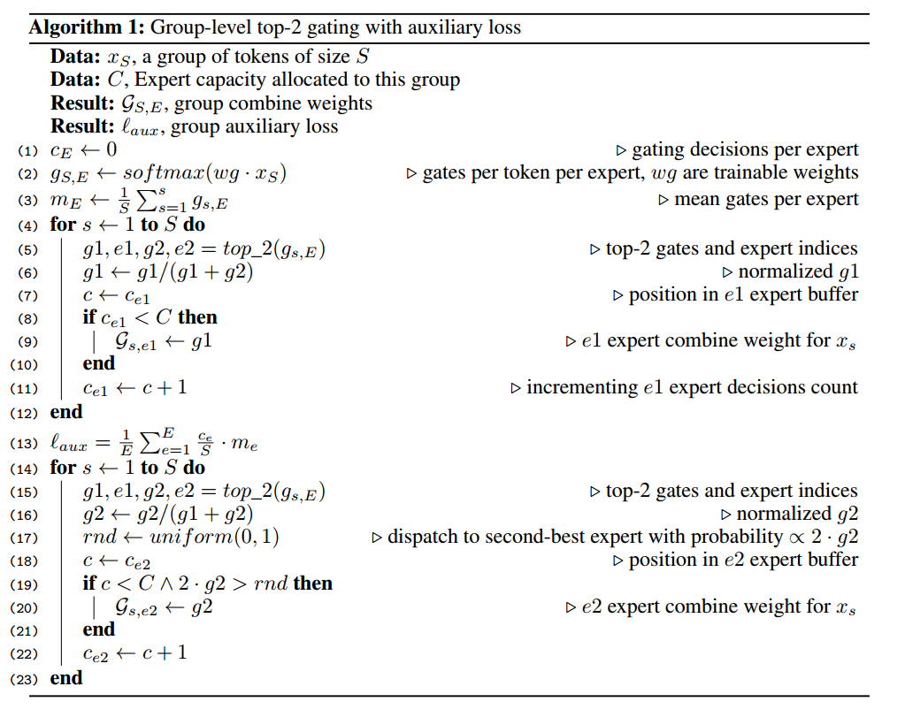 以上是GShard的gating算法,它的大致思路是: